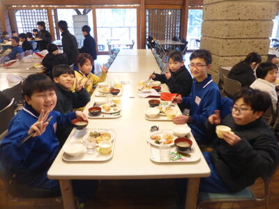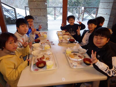 2月17日(火)~19日(水)の期間に、5年生の冒険活動教室がありました。「協力・挑戦・自主」のスローガンのもとそれぞれ自分のめあてを立てて、目標達成できるようそれぞれの活動に精力的に取り組むことができました。3日間、気温は寒い時間帯もありましたが、晴天に恵まれ、里山の自然の中で、感動を味わい、様々な体験活動での課題に友達と協力して解決することができました。第3弾は昼食・夕食・宿泊棟の様子です。