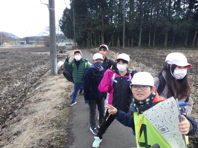 2月17日(火)~19日(水)の期間に、5年生の冒険活動教室がありました。「協力・挑戦・自主」のスローガンのもとそれぞれ自分のめあてを立てて、目標達成できるようそれぞれの活動に精力的に取り組むことができました。3日間、気温は寒い時間帯もありましたが、晴天に恵まれ、里山の自然の中で、感動を味わい、様々な体験活動での課題に友達と協力して解決することができました。第2弾は篠井発見ラリーの様子です。