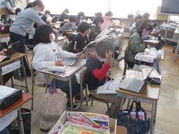 3年生の理科で学習した内容(じしゃくの性質,電流など)を生かした「おもちゃランド」。各クラスが他のクラスを招待し,自分たちの班が作ったゲームの説明をしていました。楽しく遊びながら,1年間の復習をすることができたようです。