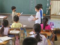 4年生の教室から元気な英語の発音と笑い声が聞こえてきます。子供たちがフラッシュカードを見て英語で答えていました。素早く笑顔で答える子供たちの様子から,ずいぶんと慣れていることがうかがえます。