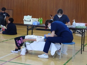 カンセキスタジアムでは,開会式の後,トラック競技である100メートル走は5年生女子からスタートしました。そしてフィールドでは,走り高跳びと走り幅跳びの種目を行っていました。午後は4×100メートルの男女混合リレーがあります。どの種目も今まで練習してきた結果が出せるといいですね!