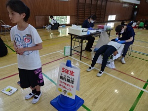 また昼休みは,校庭で今日も開閉会式の練習を行っていました。プラカード係を先頭に子供たちの動き方を確認したり,開閉会式の優勝旗と準優勝トロフィーの返還と授与や選手宣誓など進行に合わせて動いてみたりしました。いよいよ近くなってきた本番の運動会に向けて,体育主任を中心にしっかり準備をしています。