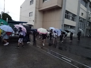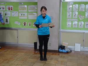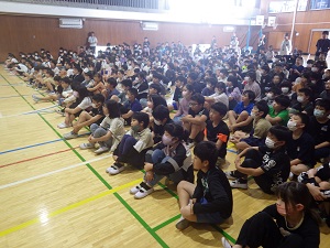 次に,運動会での服装のことや帽子や靴,靴下のことについての話がありました。運動に適した格好をしてくださいということです。さらに,マスクについては,着用は個人の自由ですが,競技や演技の時は外しましょうという話で締めくくられました。約束やルールを守って,心に残る運動会にしましょうね!