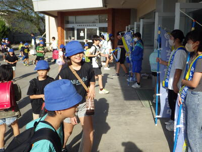地域のみなさまにも、毎日の登下校の立哨でお世話になっております。学校だけでなく、どこでも明るくさわやかなあいさつができるよう指導していきます。