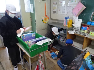 9月20日(金)図書室でホームページに載せる写真を撮影していると,業間休み時間,いつものように図書委員の児童が当番の仕事でやってきました。
