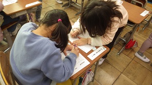 そして,朝の活動の時間に2年生の教室を回ると・・・どこのクラスも静かに学習や読書をしていました。1年生の頃は,なかなか席につけず落ち着かなかった子供たちも今ではしっかりした態度で授業に臨めるようになりました。1年間の成長を感じます。