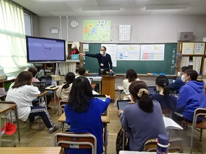 7月17日(水)5時間目,3年生のクラスで公開授業がありました。4時間目の2年生の授業に引き続き研究授業なので,指導主事の先生をお招きし,たくさんの先生方が参観しました。