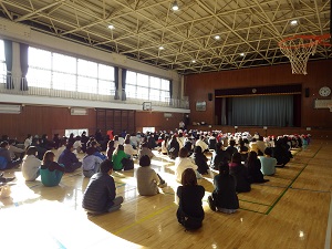 今日若松原中から歩いて来てくれた3人の代表の生徒は,あいさつ運動終了後の挨拶で,