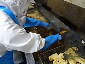 午前中はカルビー清原工場へ行き,フルグラやかっぱえびせんの製造の様子を見学しました。実際に工場で働く方のお話を聞いたり,フルグラの試食をしたりしながら,工場で働く人の仕事について学ぶことができました。社会科で「シリアル工場の仕事」について学習した子供たちは,教科書で学習したことを実際に自分の目で見ることができ,とても興味深く見学していました。