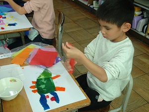 1年生もだいぶ学校に慣れてきて,上級生と仲良く遊んでいる姿が見られました。教室と校庭に分かれての活動でしたが,校庭組も暑い中,元気いっぱい楽しそうに遊んでいました。