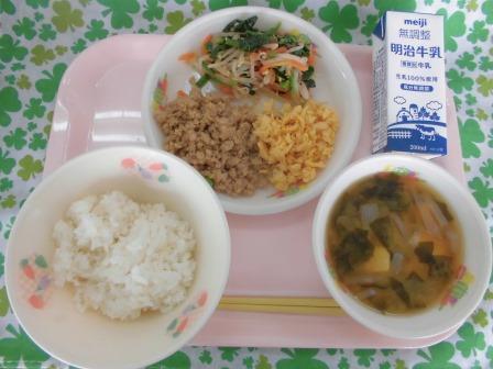 牛乳 おひたし 豆腐とわかめの味噌汁 でした。
