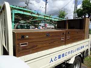 今日の作業は,来年度の教室配置を考え,4階にある2つの学習室にある机と椅子を1階に移動していただきました。50個の机を2つずつロープでくくり,非常階段を使って4階から1階に下ろしました。