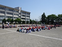学年部の方が中心となって,親子で2つのレクリエーションを行いました。1つ目は,「整列ゲーム」です。まず,子供たちは「名前のあ・い・う・え・お順」に,保護者は「出身地(北から)順」に並び替えました。次に子供たちと保護者を混合にして,誕生日順に並び替えました。どちらも頭を使い難易度が高かったようですが,保護者の皆様のおかげで無事にクリアすることができました。