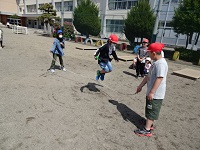 一方,外遊びの班は,「ドッジボール」「中線ふみ」「鬼ごっこ」などなどこちらも晴天でポカポカ陽気の中,元気いっぱい走り回っていました。たくさんの子供たちの笑顔が見られた楽しい活動でした。