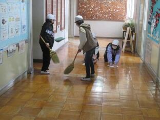 作業はまず掃除機でゴミを吸い取り,その後スチームクリーニングといって高温の蒸気で洗浄し,ノミ・ダニ・細菌,汚れ等を丁寧に取り除いていただきました。これも1年に1回の作業ですが,放送室のカーペットは見違えるようにきれいになりました。