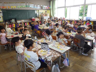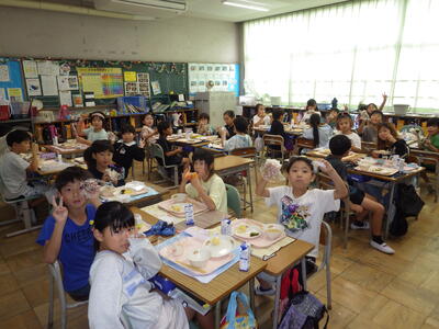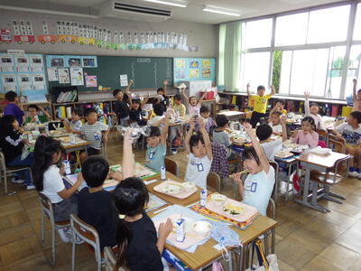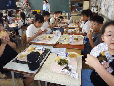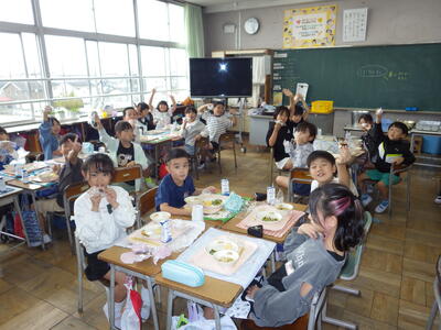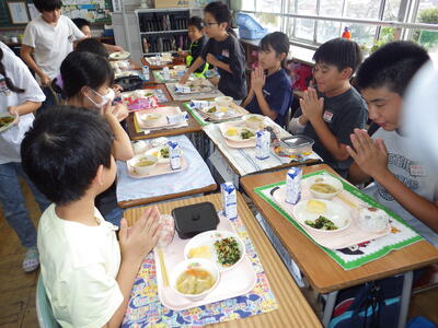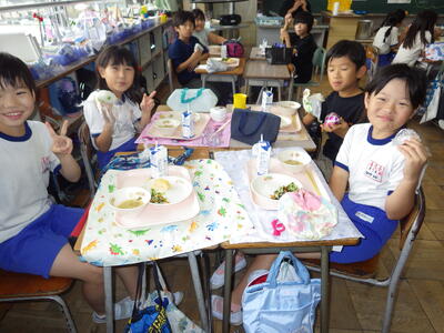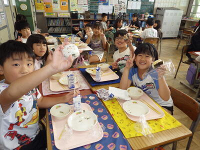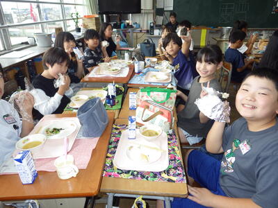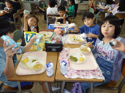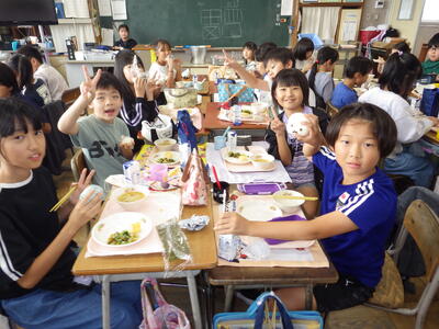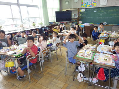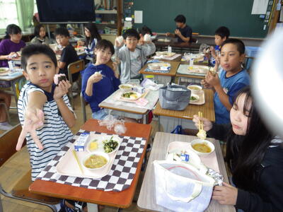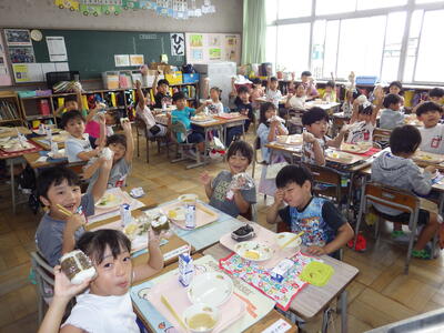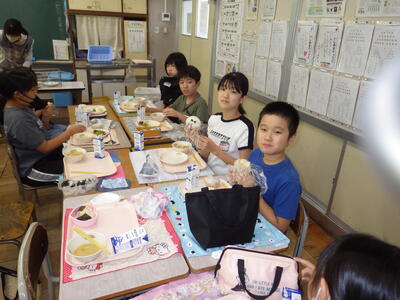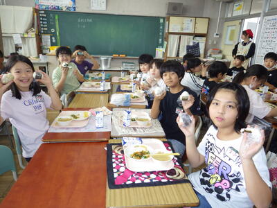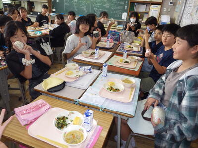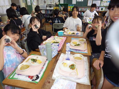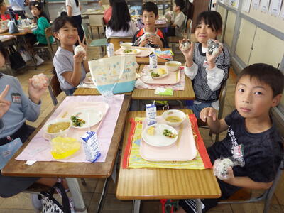10月7日(火)給食の時間、子供たちが楽しみにしていた「おにぎりの日」を実施しました。1~4年生は家族と考えたおにぎりを,5・6年生は家族の協力のもと自分で考えたおにぎりを作ることができました。事前に栄養教諭が準備したおにぎりの作り方の動画も参考になったようです。これを機会に食事(米食)について親子で考える機会を設け,家族で職への関心が高められるといいですね。