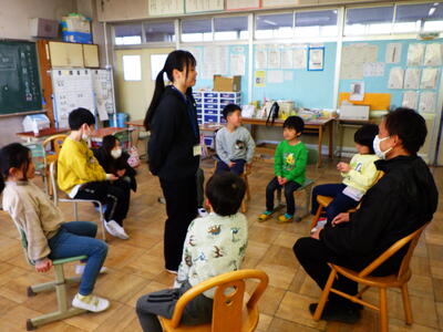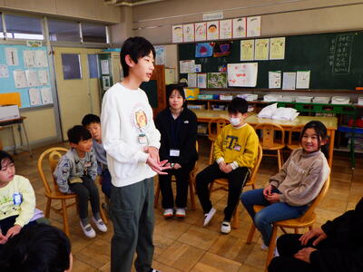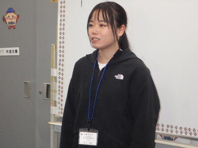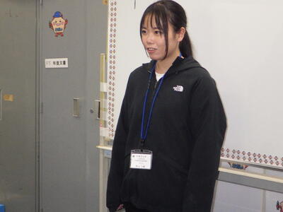 1月13日(火)宇都宮大学の授業の一環として、教職員ボランティアの西山心結先生が本日最後の来校日となり、給食の時間にTV放送でお別れのあいさつをしました。五代小出身の宇都宮大の2年生です。1学期から長い間、いろいろな学級の児童と交流したり、職員室の仕事を手伝ったり、多くの児童や先生方を支援してくださいました。本当にありがとうございました。