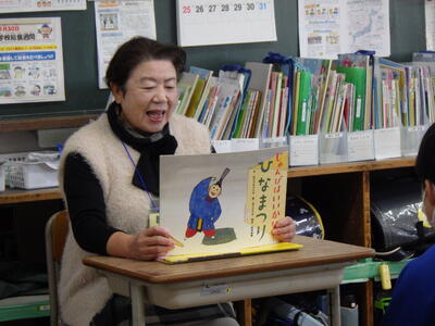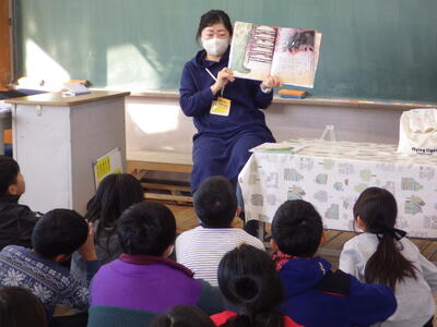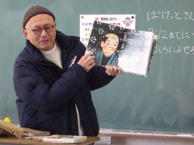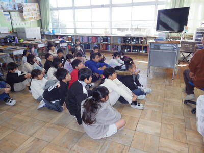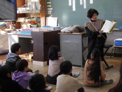 1月29日(木)今日の朝の活動は,ぽけっとさんによる今年度12回目の読み聞かせでした。今回は,1・2・3・4・6年生といずみ学級の教室で行われました。