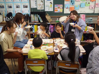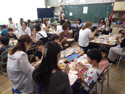 栄養教諭の講話を聴いたりして,栄養のバランスのとれた献立について考え,学校給食(食育)への理解を深めるいい機会となりました。また,親子で実際に給食を食べてふれあうことができました。久しぶりに給食を食べる保護者も喜んでいました。