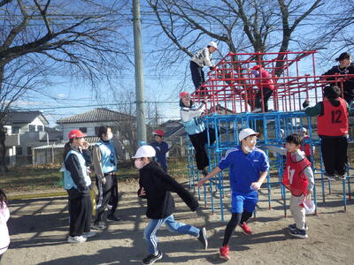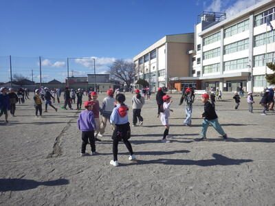 1月14日(水)のロング昼休みに5回目のなかよしタイムが行われました。6年生を中心にして,どの班も楽しく活動していました。今日は天気が良かったので外で活動する班もありました。ドッチドール、ドロケイ、中線踏み、風船バレーボール、ハンカチ落としなど様々な遊びが見られました。