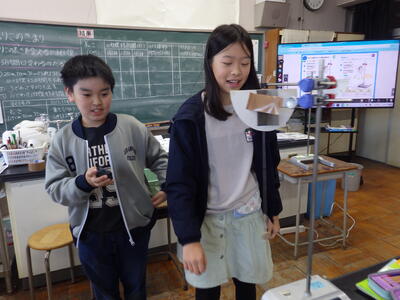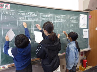 今日は5年の理科「ふりこのきまり」の単元の授業の様子をお知らせします。ふりこが1往復する時間は、ふりこの長さで変わり,ふりこの長さが同じならば,ふれはばやおもりの重さを変えても,1往復する時間は変わらないことを実験を通して理解することができました。グループ内で役割分担をし,協力しながら取り組むことができました。