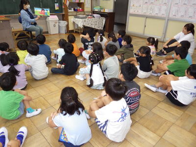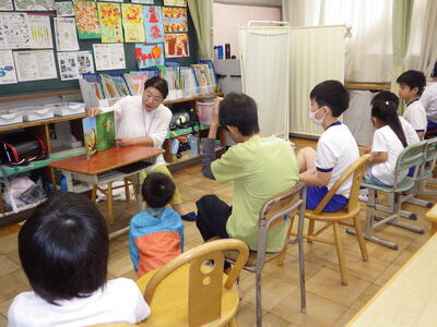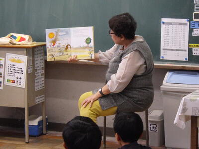 秋の本やハロウィンの本など,季節に合わせた本を選んで読んでくださる方もいました。教室では,お話の世界に入って真剣な表情で聞いているクラスや,楽しいお話に盛り上がっているクラスなどなどいろいろなクラスがありました。今日も朝早くから子供たちのためにありがとうございました。