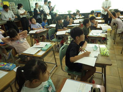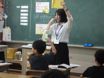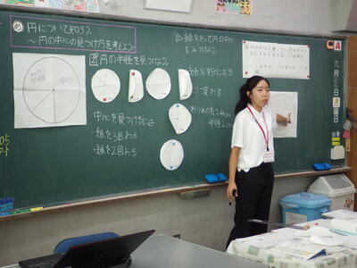 9月29日(月)5校時に3-1で久地井先生が算数「円と球」の授業,30日(火)2校時に2-3で黒坂先生が算数「三角形と四角形」の授業,4校時に4-1で西先生が国語「文の組み立て方とと修飾語」の授業を公開しました。たくさんの本校の先生方に囲まれながら,3週間の教育実習で学んだことを生かして,それぞれの授業の達成目標に向けた授業を実践することができました。3名とも,担当学級の子供たちと良好な人間関係が構築されていて,子供たちは,3名の実習生の問いかけや指示に対して,目を輝かせながら,学習課題に取り組んでいました。3名の先生方は一生懸命に授業準備をしたり,子供たち一人一人と真剣に向き合ったりすることができ,堂々とした授業でした。