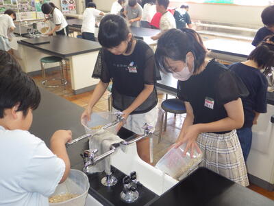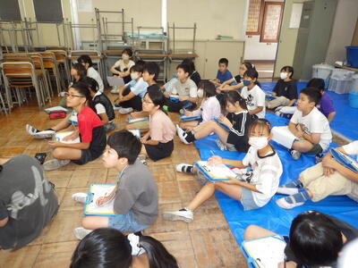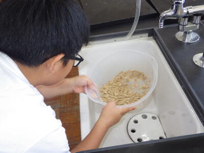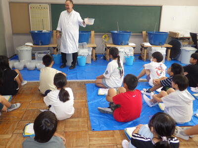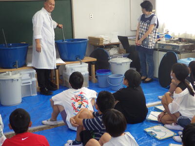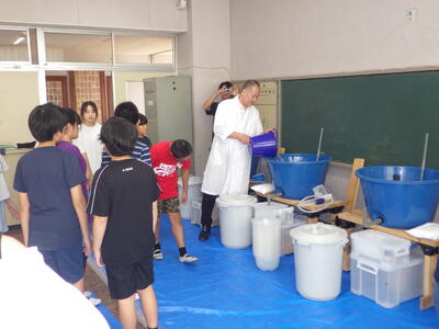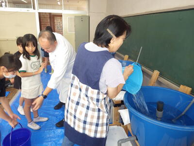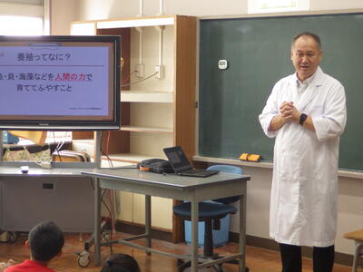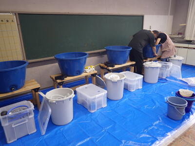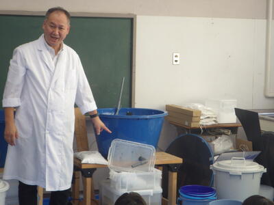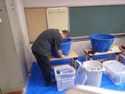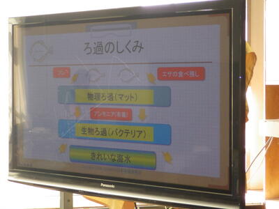 10月2日(木)1校時‥5-2,2校時‥5-4,3校時‥5-1,4校時‥5-3にヒラメの水槽設置授業が行われました。今回は,養殖の大切さ,水槽の仕組み,ろ過の仕組みについて話がありました。世界と人口と食糧のグラフの説明では,世界の人口が増え,食べる魚の量が増えると2048年,海には魚がいなくなると聞いて,児童は驚くとともに養殖の重要性が高まることを理解しました。物理ろ過や生物ろ過の役割も理解して,サンゴ砂を洗いました。お魚受け入り式は10月22日(木)を予定しています。楽しみですね。