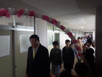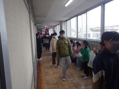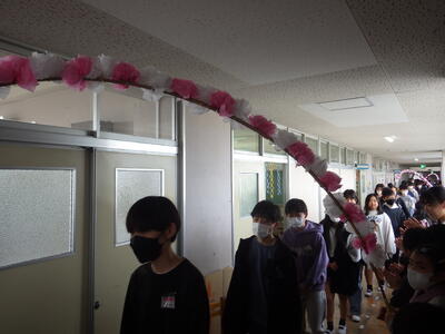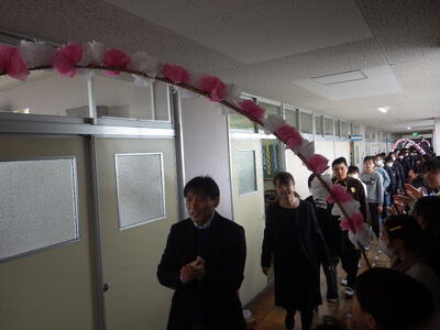 3月18日(水)に明日、卒業を迎える6年生への「卒業生歓送会」が行われました。1年間学んだ教室を出て、音楽がなる中、在校生によるアーチをくぐり校舎内を歩きました。拍手と共に「おめでとう。」という言葉を聞きながら涙ぐむ児童もいました。6年間本当によく頑張りました。特に今年度は最高学年として下級生に優しく接したり、お手本を示したりしながら五代小の子供たちを引っ張ってくれました。卒業生の皆さん、ありがとうございました。中学校へ行ってもがんばってください。皆さんの更なる活躍を応援しています。