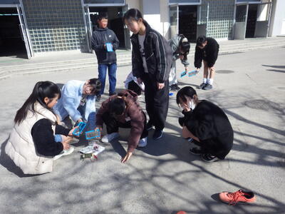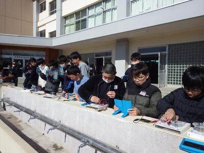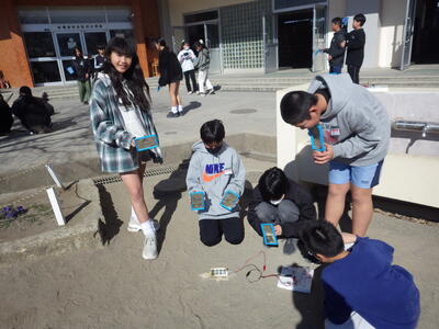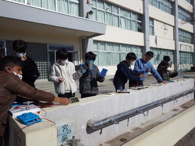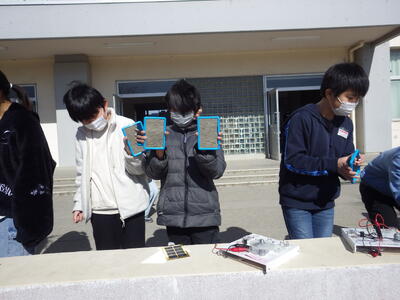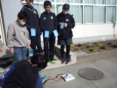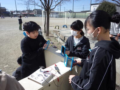2月4日(水)に、6年生の理科「発電と電気の利用」の単元で光電池を使って発電し、モーターを回す実験をしました。この実験を通して光電池に当てる光の強さを強くすると流れる電流の大きさも大きくなることや、光電池をつなぐ向きを逆にすると、流れる電流の向きも逆になることを学びました。