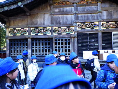 12月12日(金)に5年生が日光方面へ校外学習へ行ってきました。日光自然博物館では、奥日光の自然や歴史をデジタル体験型展示でリアルに体験することができました。世界文化遺産にも登録されている日光東照宮では,陽明門,三猿,眠り猫等の有名な重要文化財を見学することで,見聞を広げることができました。校外学習を通して,規律ある集団行動や公共の場のマナーを守った班別行動もでき,いい思い出づくりができました。