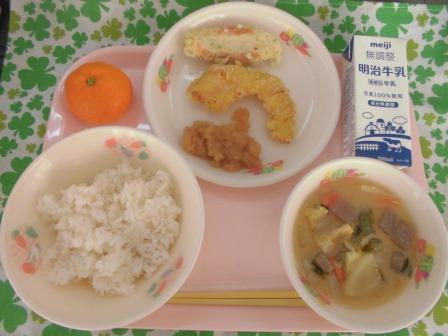 大根おろし(ゆずしょうゆ) まろやか味噌汁 みかん でした。