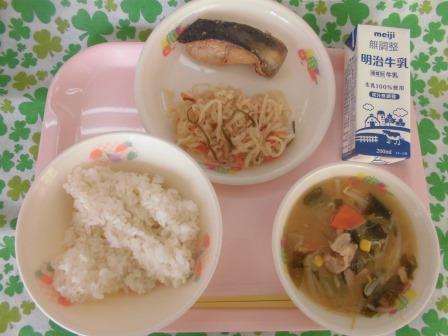 牛乳 かぶの和風スープ でした。