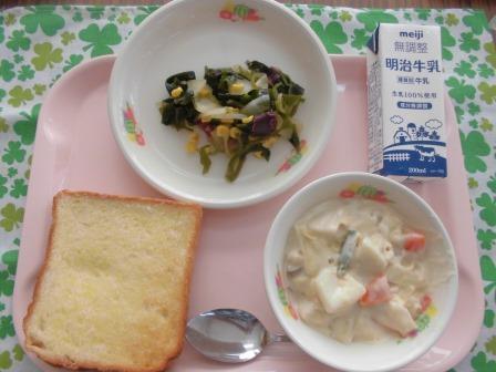 今日の献立は、シュガートースト 牛乳 かんぴょうと湯波の和風シチュー
