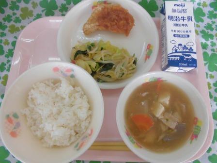 ほうれん草ときゃべつのごま和え 道産子汁 でした。