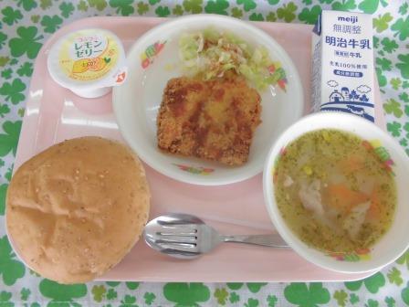 ボイルキャベツ) 牛乳 ポテトスープ レモンゼリー でした。
