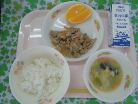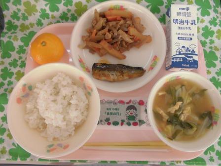 五目きんぴら ほうれん草と白菜の味噌汁 みかん でした。