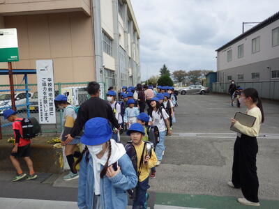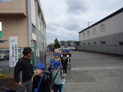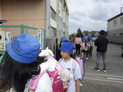 4月14日(火)3時間の授業を終了した1年生、2回目の保護者のお迎え当番による下校がありました。子どもの家に向かう児童を除いた児童がきとんと並んで帰ることができました。