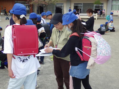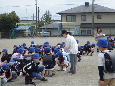 4月15日(水)15:00~2年~6年までの今年度、最初の下校指導が行われました。各班ごとに綿密にメンバーの確認(1年生も確認)、集合時刻・集合場所の確認を行いました。さらに、トラブル等が発生していないかの確認を全体で行い、安全に登下校できるよう、交通指導担当の先生から話がありました。何度も何度も同じ話をされるのは、皆さんの命を守るためです。しっかり、交通ルールを守っていきましょう。