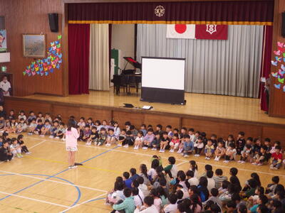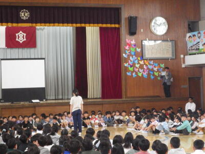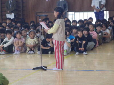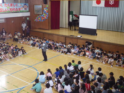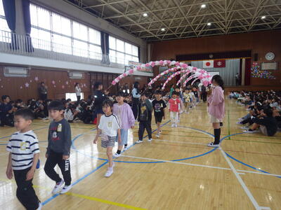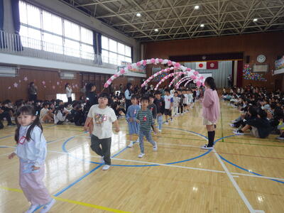 4月20日(月)に1年生を迎える会が行われました。五代小に入学した1年生を,2から6年生で温かい気持ちで迎えることと、1年生が五代小での生活への期待がもてるようにすることがねらいでした。児童会の進行で、全員が一生懸命取り組み,とても心温まる会となりました。