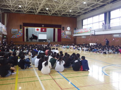 4月14日の5校時、離任式が行われました。懐かしい先生方の姿を見たり,声を聞いたりして,今までお世話になったことへの感謝の気持ちが湧いてきたことでしょう。また,離任の挨拶を聞いていると,一緒に学んだ日々のことが思い出されたことでしょう。将来に向けて子ども達へのメッセージを発言してくださった先生方もいます。本当にありがとうございました。