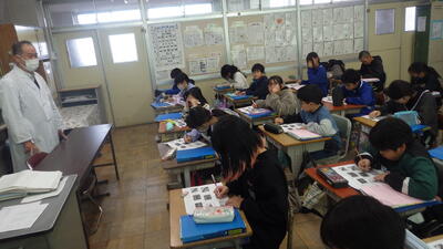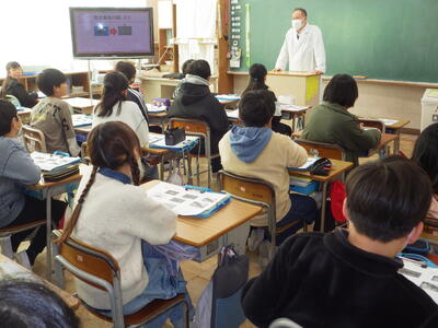 11月25日(火)6年生を対象に中学校の乗り入れ授業があり,若松原中学校の大垣先生に音楽の授業をしていただきました。先生から「表情豊かに身体を使って歌おう」という目標がたてられました。はじめは、表情が硬かった子供たちは、様々な動作を取り入れた先生の指導で、少しずつ表情が緩み、最後は、目標を見事達成して歌うことができました。中学校の授業の取組の心配を一つ取り除くことができた様子でした。中学校でも、6年生の皆さんには頑張ってほしいと思います。