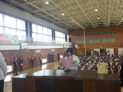 担任の紹介の後,一人一人呼名されましたが,どの子も元気に返事することができました。本校の合言葉「かしこく」「やさしく」「たくましく」「礼儀正しい 五代の子」を守って,元気に小学校生活を送ってほしいと思います。応援しています。