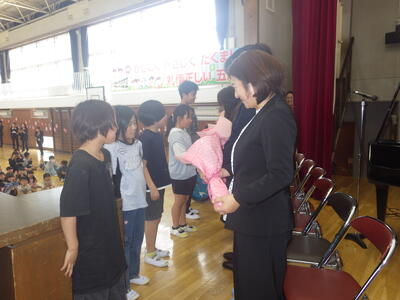 校長の話では、五代小の合言葉「かしこく・やさしく・たくましく・礼儀正しい五代の子」の確認をしました。