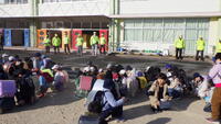 13日(火)の今日は、昼休みの時間を利用して、事前に通告なしで地震から火事が発生したと想定した避難訓練を実施しました。