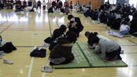 本校は学校の特色でもある百人一首。校内で1年生と2年生は特別教室。3年生以上は体育館で実施いたしました。