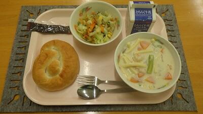 今日の給食は,セルフ焼きそばパン・牛乳・トックスープ・みかんゼリーです。