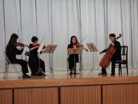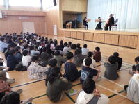 3・4時間目に体育館で全校生が「アーク弦楽四重奏団」(茨城県潮来市)の見事な演奏に聴き入りました。