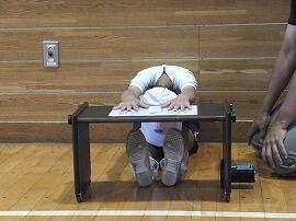 種目によっては,体を支えてあげたり,回数を数えてあげたりして,交流も深めていました。