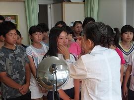 学校医の亀掛川先生に来校いただき,眼科検診を行いました。アレルギー性の病気など,治療の必要がある場合には,早めに治療しましょう。